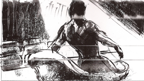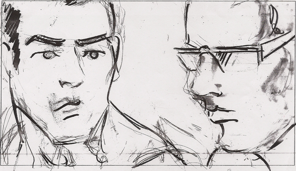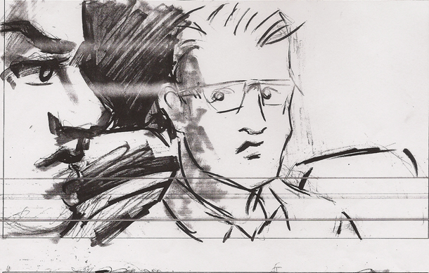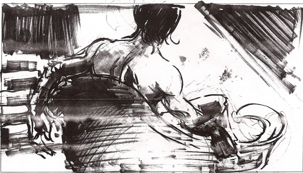 The movie developed over a period of 18 months. We've included some early storyboards of key moments and the way they eventually appeared through the eye of the camera. Sometimes our vision changed because of creative revelations. Other times, it changed because of practical limitations. But we're grateful to all our key crew for their hard work (See: Film Production/Crew) in turning words on a page into sounds and images on a big screen. And a special thanks to Gabriel Flores for his terrific storyboards that helped us get started.